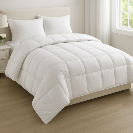 Nórdico de microfibra tacto pluma: suave, transpirable e hipoalergénico. Calidez equilibrada para otoño-invierno, lavable a máquina y disponible en varias medidas estándar.